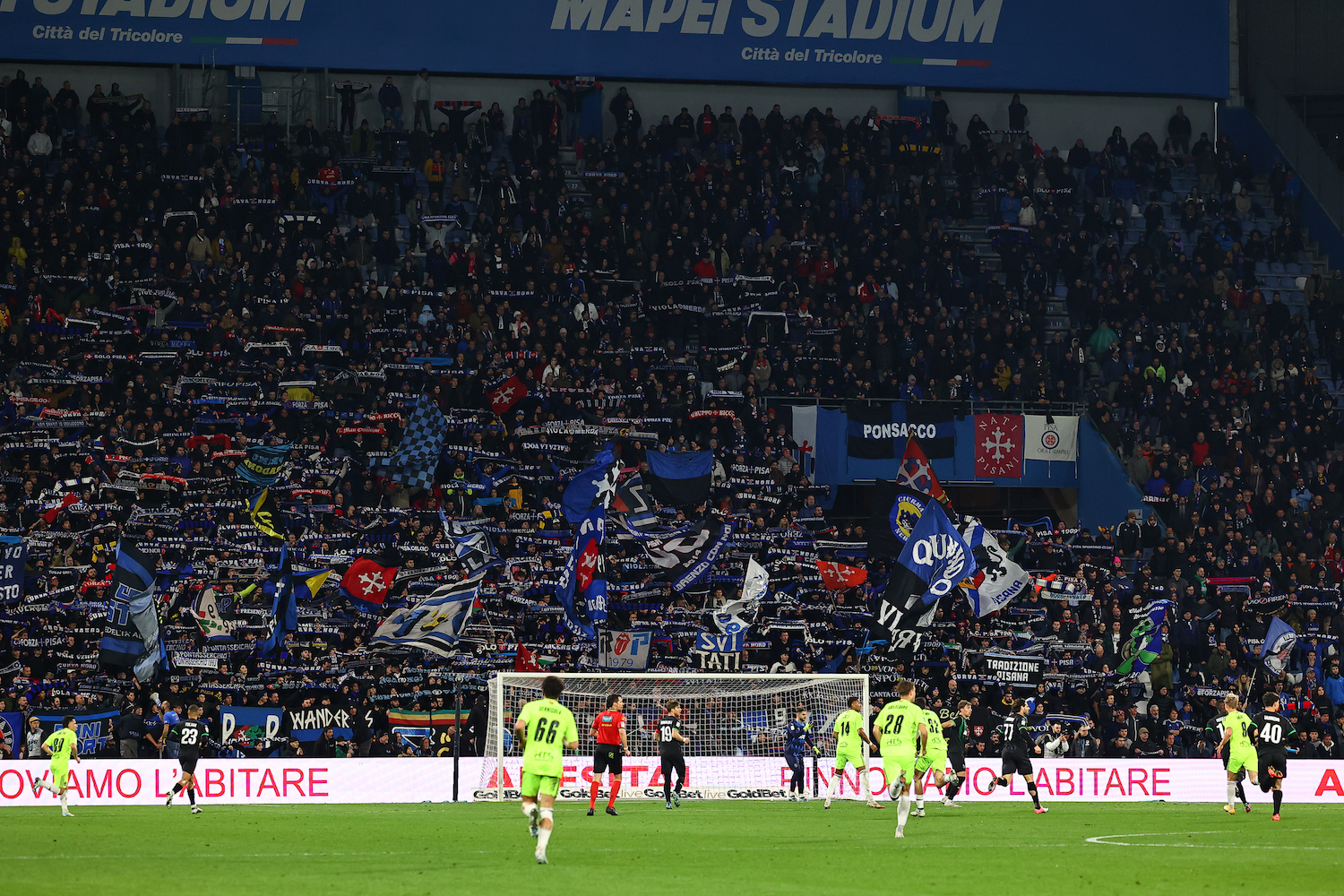 Pisa had already taken every seat available in the Tribuna Nord – a stand that holds 4,000 supporters – when an agreement was struck to allow more Nerazzurri tifosi to buy tickets in the Tribuna Est. The end result was a 7,000-strong sea of black and blue taking over the ground.
